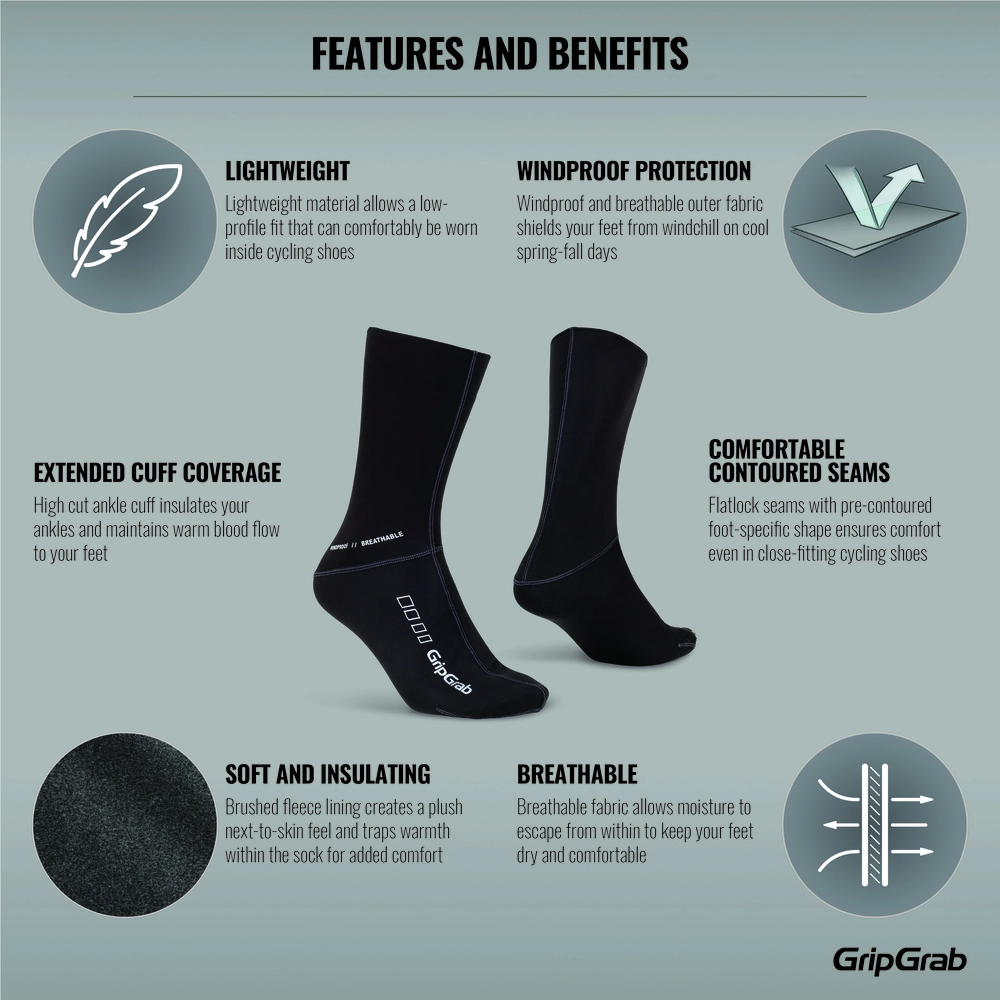 Vindtæt sok med høj isoleringsevne. Kan med fordel anvendes i kombination med et af GripGrabs tynde vandtætte skoovertræk. Flade syninger sikrer optimal komfort i skoen.