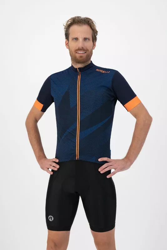 Rogelli cykeltrøje i Race Fit! Cykeltrøjen er med korte ærmer og i det åndbare Dynacool, der giver en åndbar og fleksibel tur. Der er en lang lynlås med autoblock, der giver en vindtæt cykeltrøje. Der er tre ryglommer og en ekstra lomme med lynlås. Der er silikonestrip i bunden af trøjen, så den ikke glider op under kørslen.