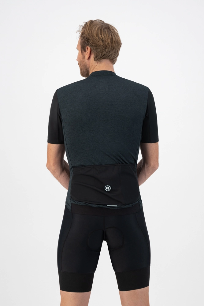 Jersey fra Rogelli i Dynaflex på bare front og ryg, der giver en komfortabel og fleksibel cykeltur. Ærmerne er lavet i Dynacool, så du kan komme af med varmen. Lynlåsen går hele vejen igennem trøjen og der er tre ryglommer, samt en ekstra lomme med lynlås. Der er silikonestrip i bunden af trøjen, så den ikke glider op under kørslen.